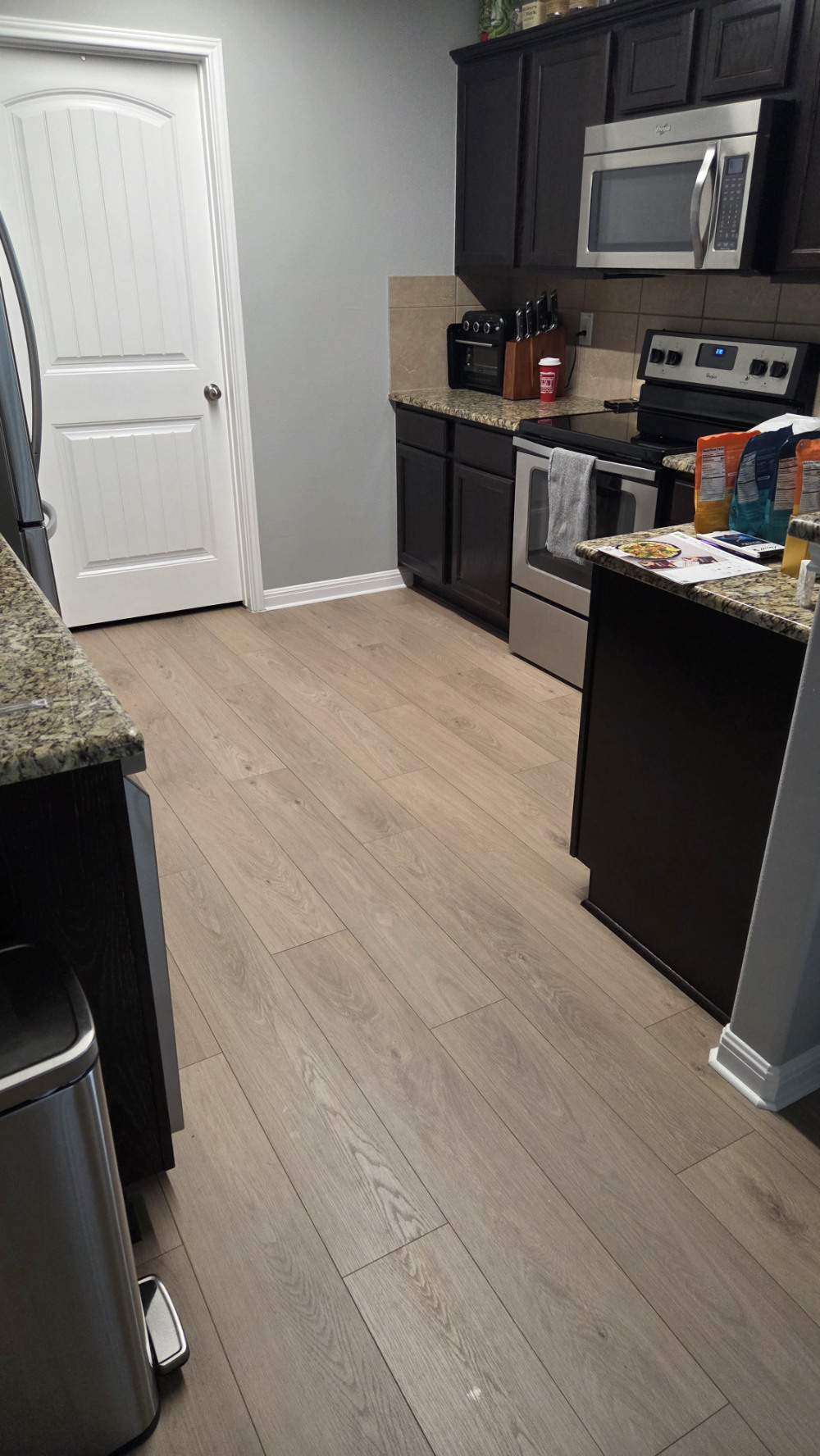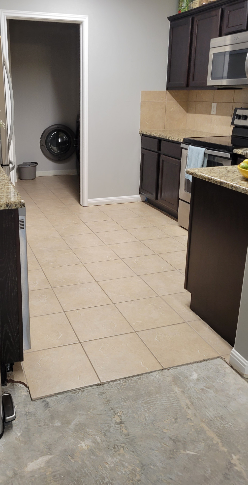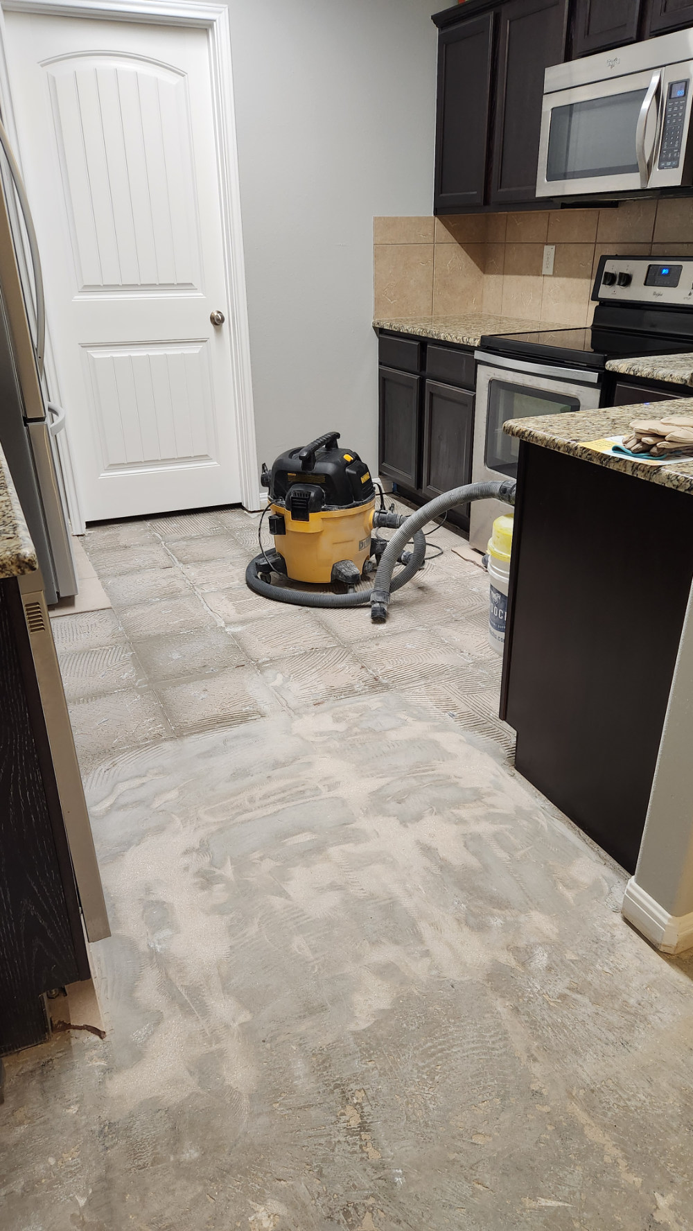 Flooring: Tile removal and replacement with LVP.
